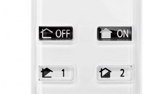 Steuerung des Alarmsystems mit einem Handgriff. 4 individuell programmierbare Tasten. Erhältlich als Set mit 2 Funk Fernbedienungen mit jeweils 4 Funktionen.
